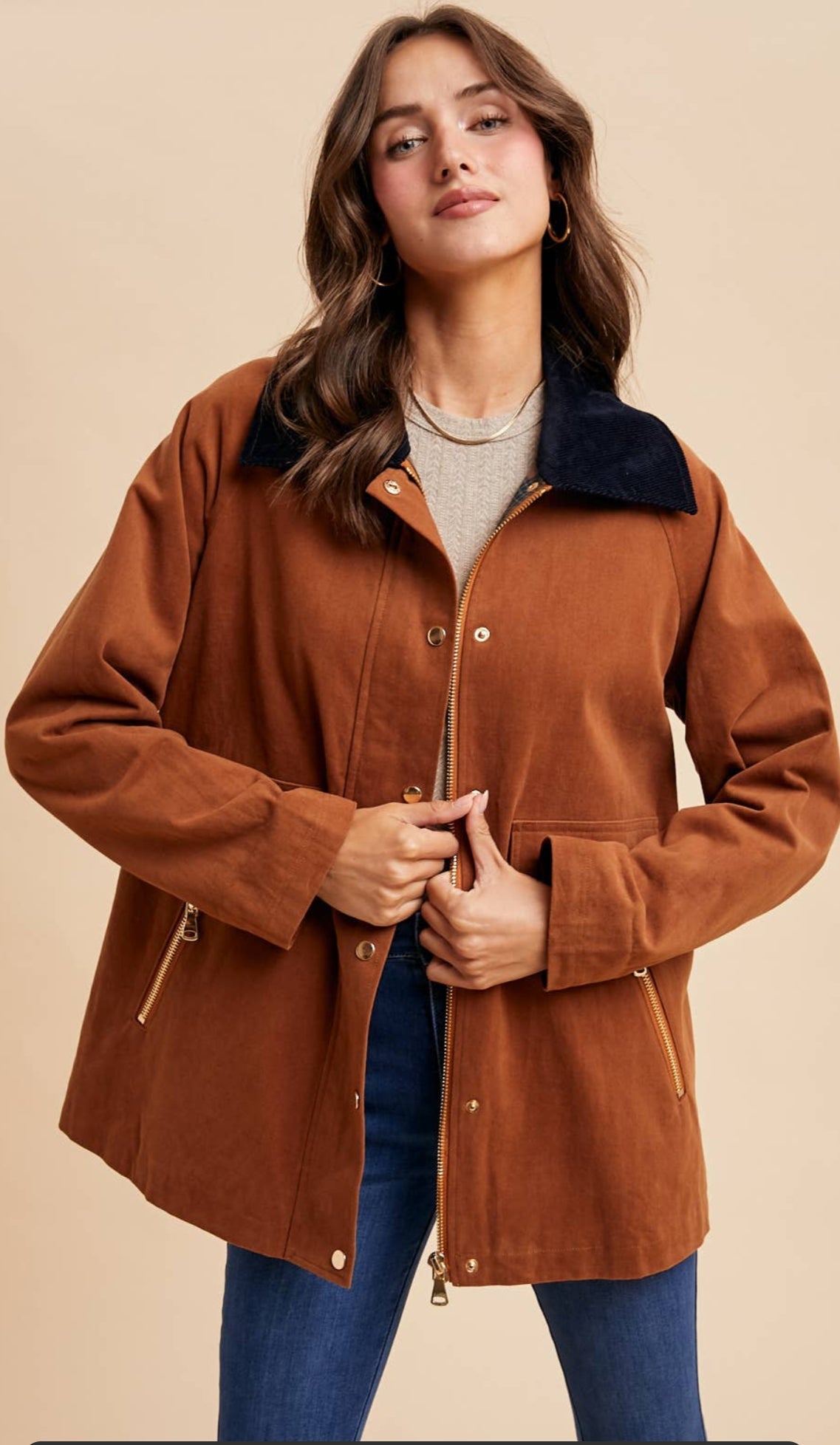 Cognac Cotton Barn Jacket – Women’s Classic Utility Coat