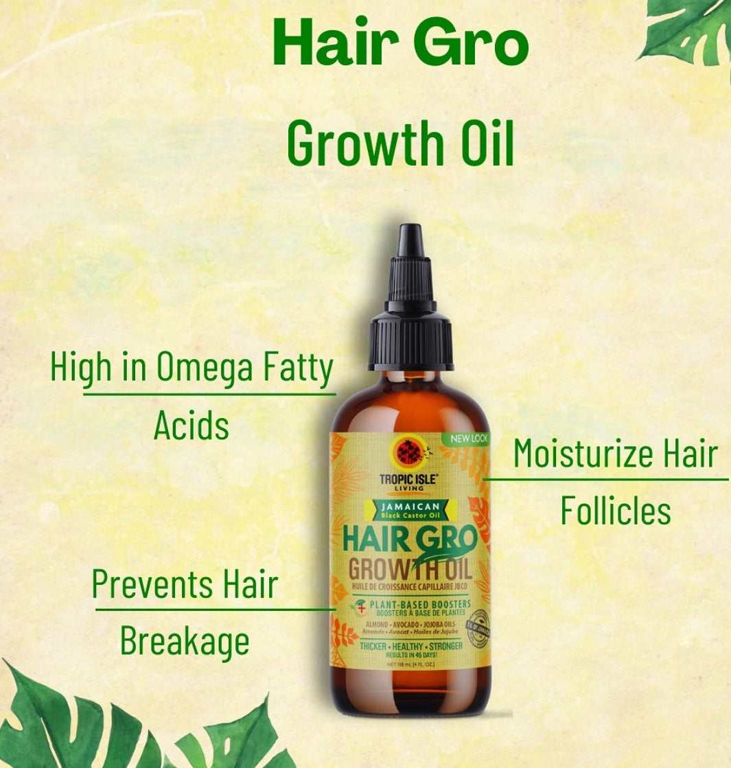 Introducing Tropic Isle Living's Jamaican Black Castor Hair Growth Oil. Our 100% natural formula contains Omega fatty acids, Vitamins A, C, E & Minerals to strengthen, nourish, and moisturize hair follicles. Experience thicker, stronger, and longer hair for all hair types. Say goodbye to breakage, thinning, and excess hair loss.